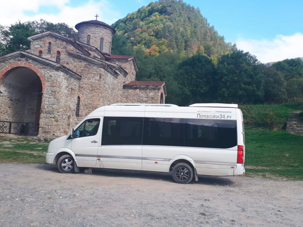 При заказе пассажирской перевозки на Кавказ, мы обговариваем место и время точки сбора. Микроавтобус пребывает на точку сбора и перевозит в конечную точку маршрута.